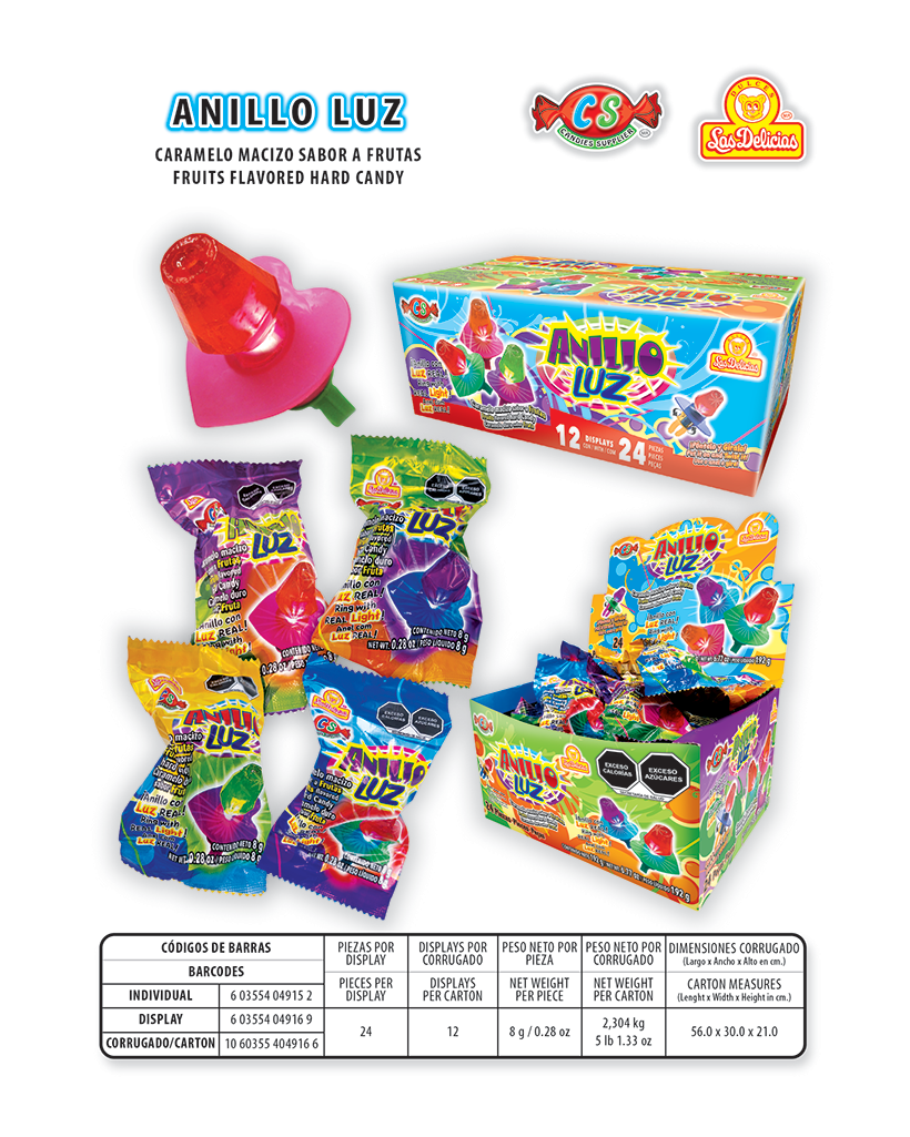 Caramelo Macizo Sabores Frutas Con 24 Pzas. por Display