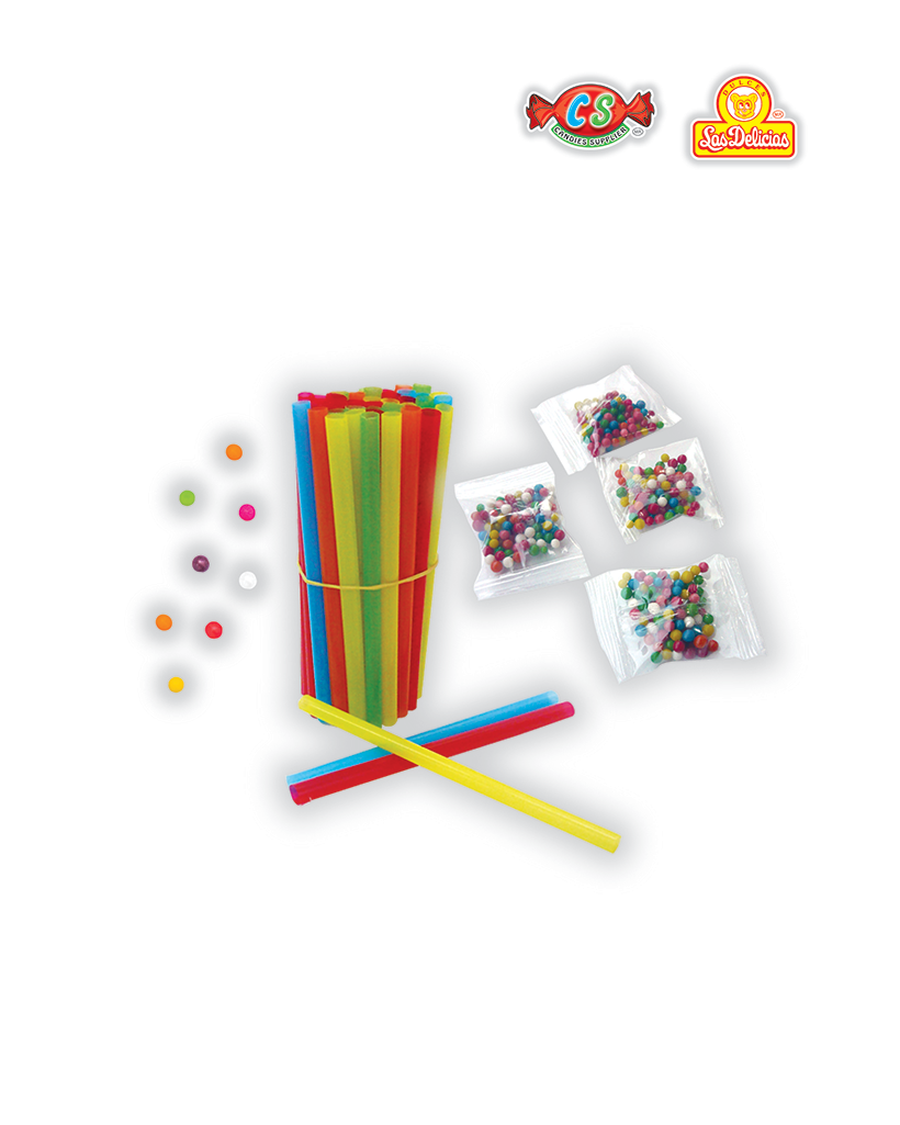 Popotes Surtidos Rellenos con Grajea Con 48 Pzas. por Display
