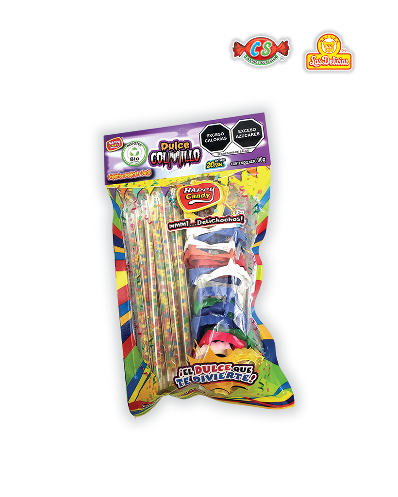 Popote con Gragea Acidulada y Silbato Turbina Con 20 Pzas. por Bolsa