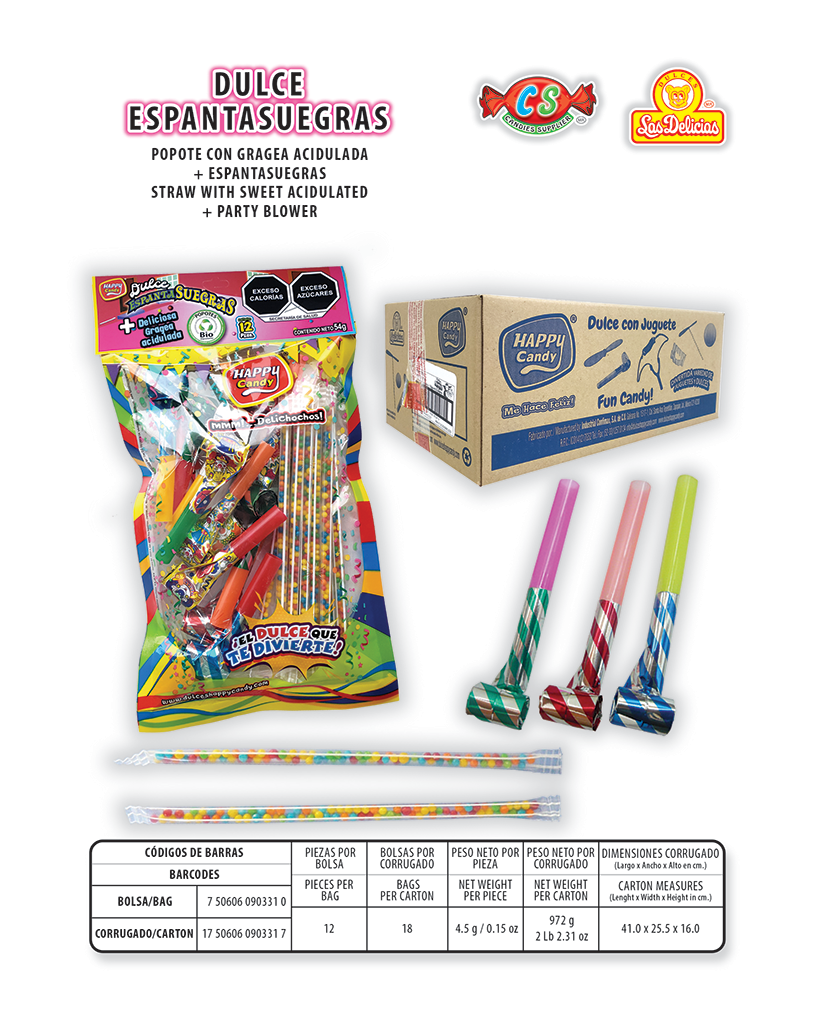 Popote con Gragea Acidulada y Espantasuegras Con 12 Pzas. por Bolsa