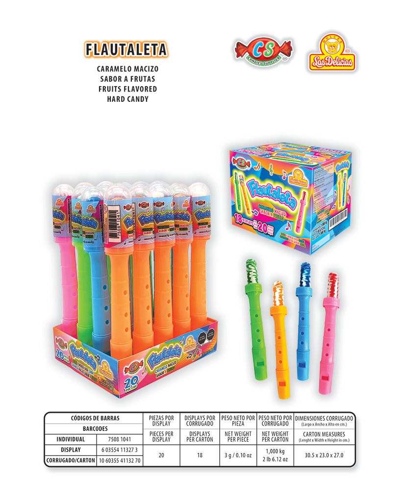 Caramelo Macizo Sabores Frutales 20 Pzas. por Display