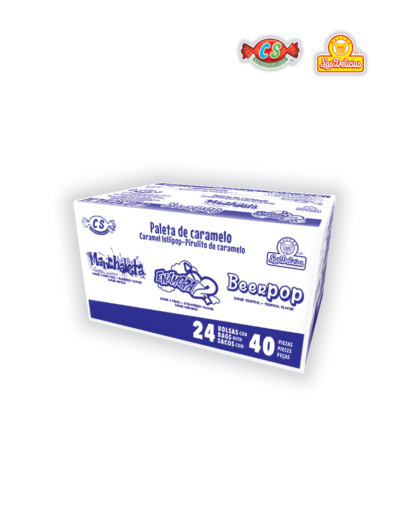 Paleta de Caramelo Macizo Sabores Frutales Con 24 Pzas. por Display