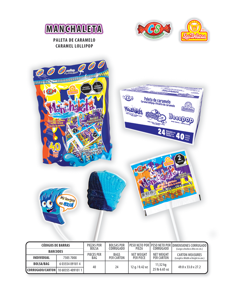 Paleta de Caramelo Sabor Mora Azul Con 40 Pzas. por Bolsa