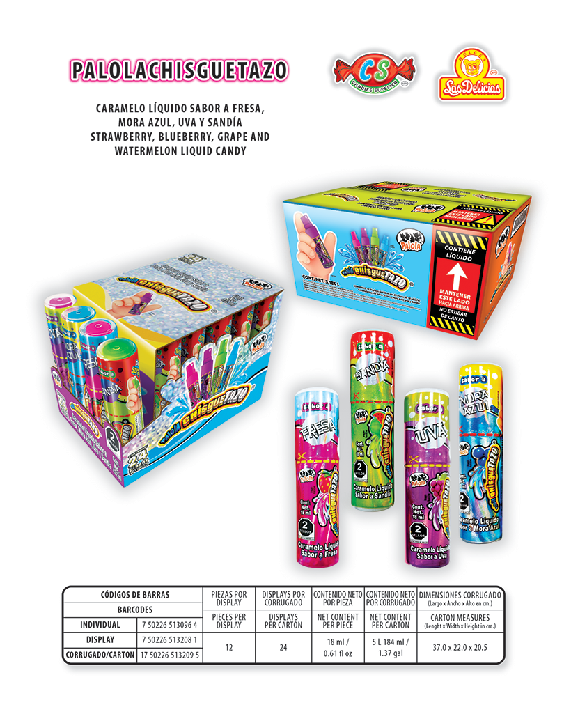 Dulce Liquido Sabores Frutales Con 12 pzas. por Display
