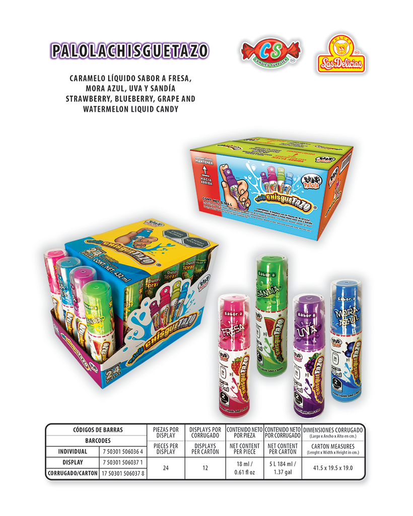 Dulce Liquido Sabores Frutales Con 12 pzas. por Display