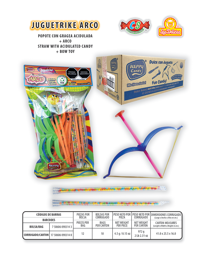 Popote con Gragea Acidulada y Arco Con 12 Pzas. por Bolsa