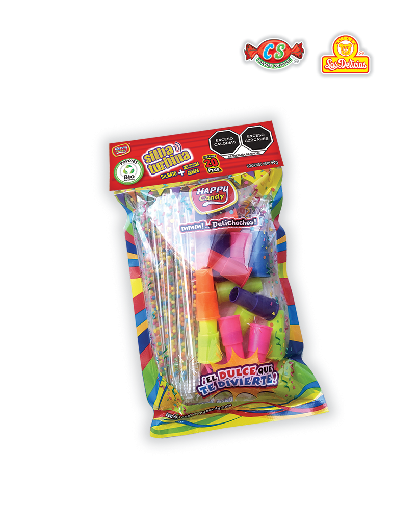 Popote con Gragea Acidulada y Silbato Turbina Con 20 Pzas. por Bolsa