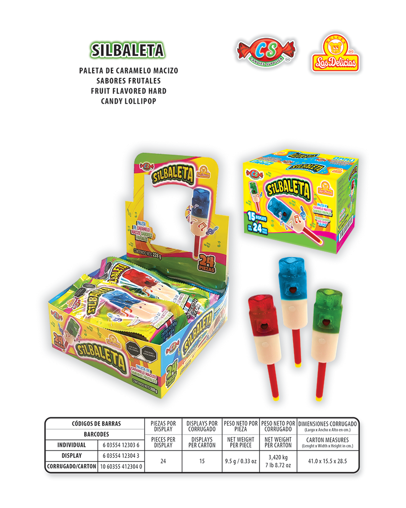 Paleta de Caramelo Macizo Sabores Frutales Con 24Pzas. por Display
