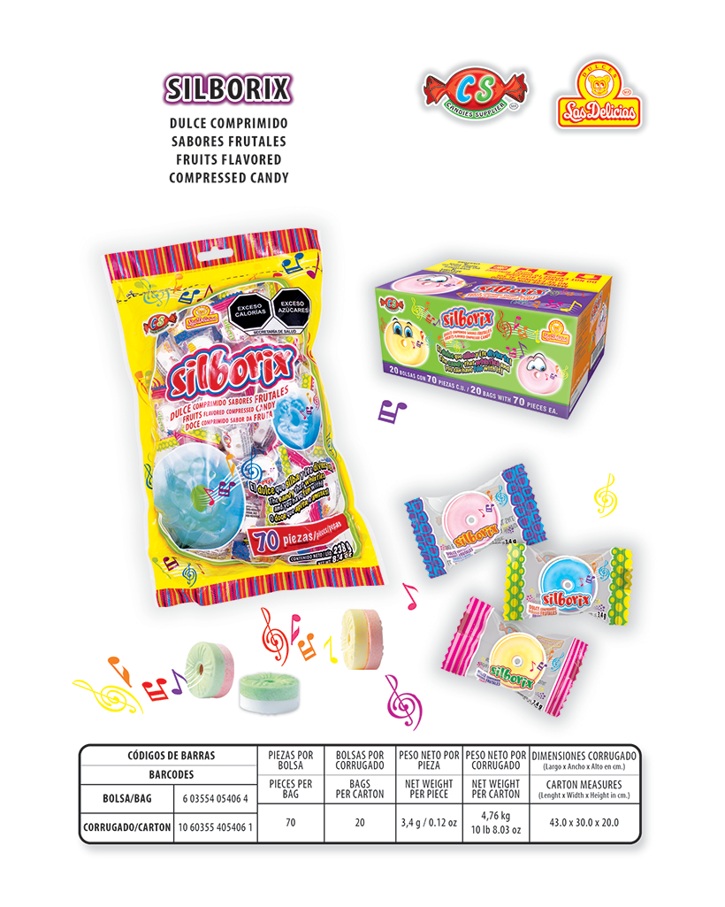 Popote con Gragea Acidulada y Silbato Turbina Con 20 Pzas. por Bolsa