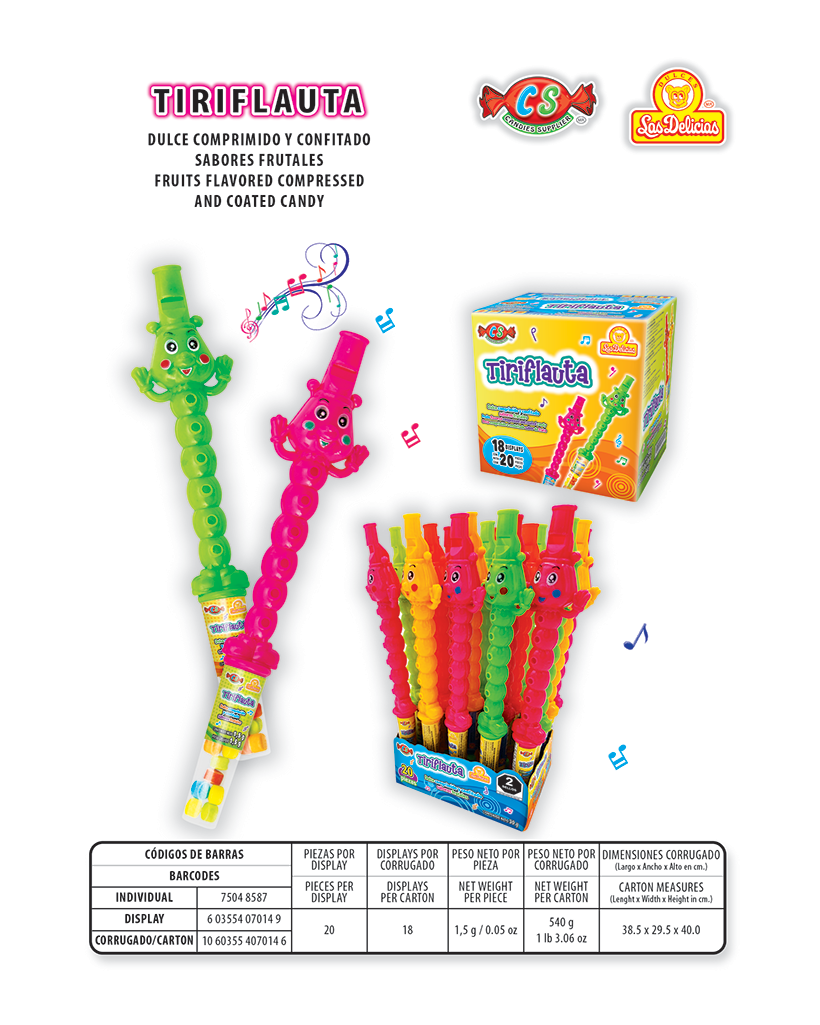 Dulce Comprimido y Confitado Sabores Frutales Con 20 Pzas. por Display