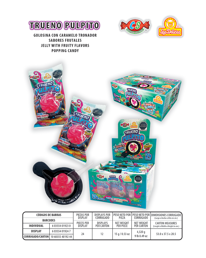 Golosina con Caramelo Tronador Sabores Frutales Con 24 Pzas por Display